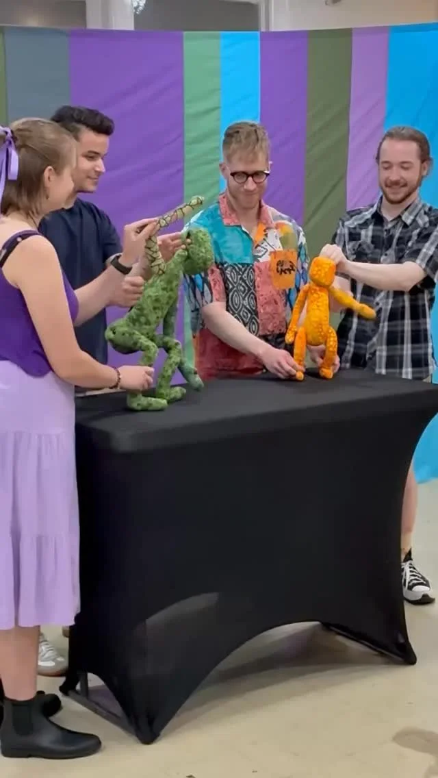 We’ll start with group warm ups, have a little puppetry bootcamp, then get right into the nonsense.